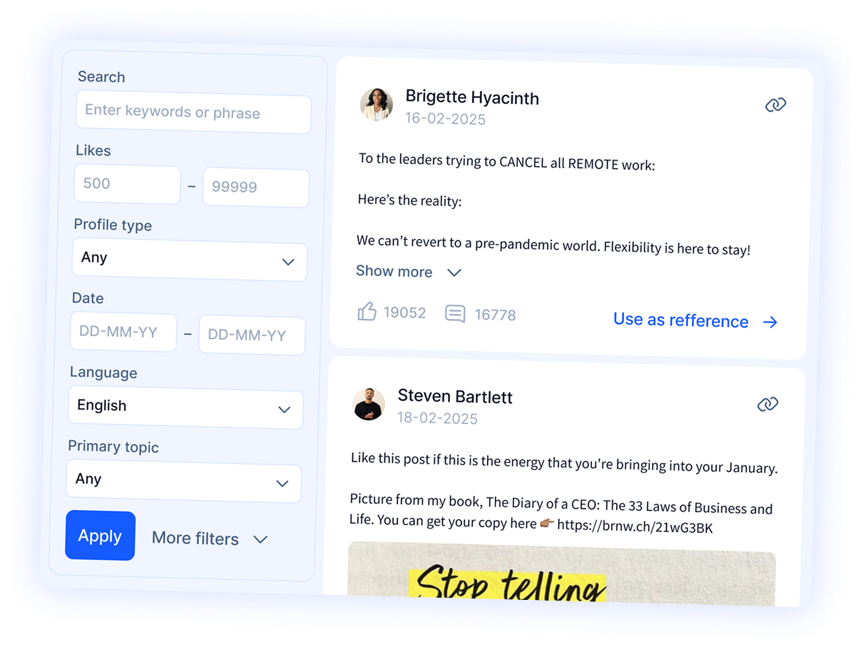 Find perfect post idea and create engaging, authentic posts in just 1 minute
